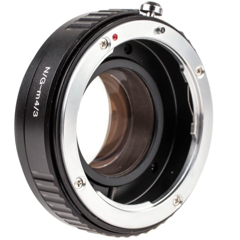 Dieser Adapter kann benutzt werden, um Nikon-F-Objektive an einer MFT-Kamera zu verwenden. Dabei verkürzen Linsen die Wirkung der Brennweite um den Faktor 0,72, was die formatfaktorbedingte Telewirkung mindert. Außerdem steigt die Lichtstärke um 1 Blende.